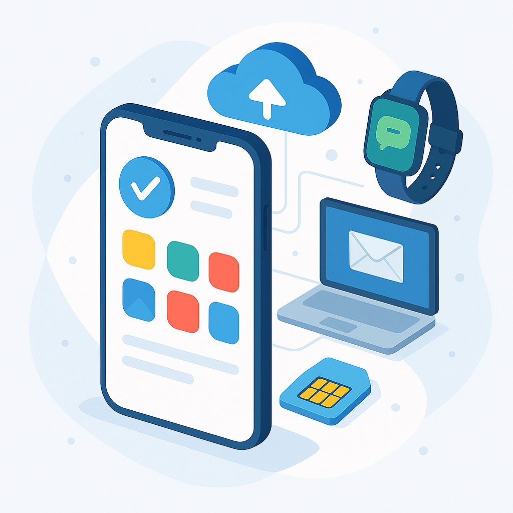 Your accounts, cloud, eSIM, security — configured flawlessly.